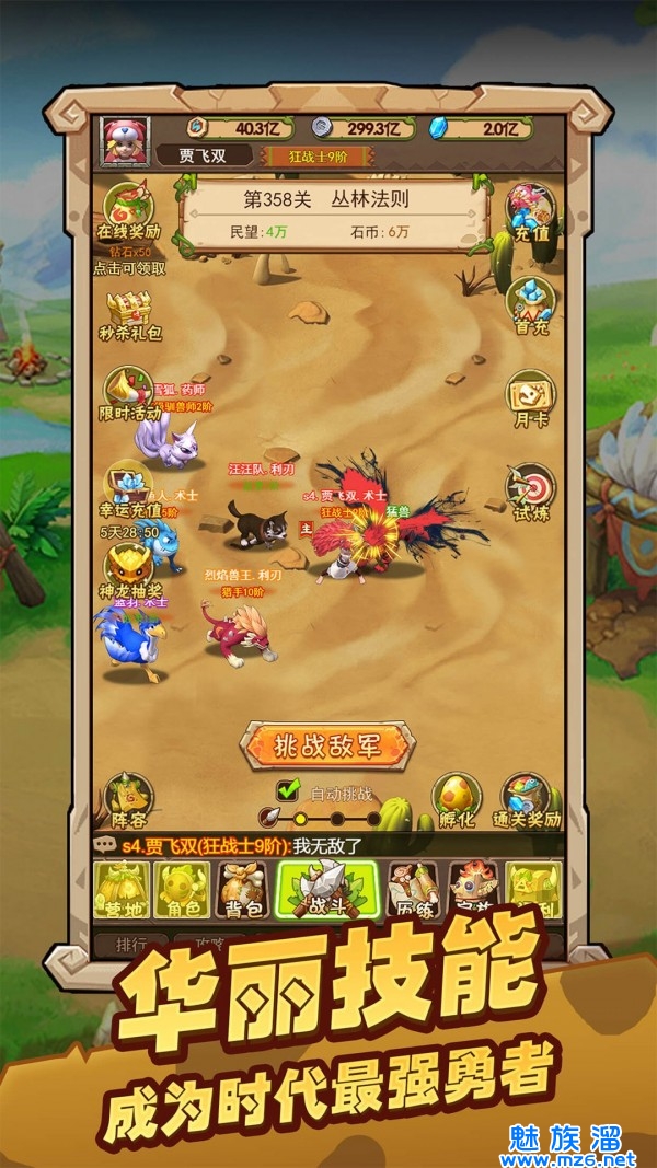 提升等级搭配不同的技能,打造你的专属套路,获得更强战力;