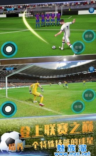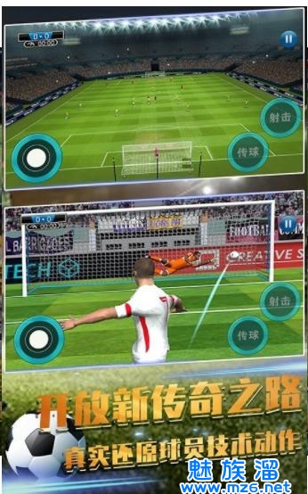 3、全新引擎打造的游戏画面和动作,流畅的足球飞行轨迹,数十个守门员的抛投动作,带给你最真实的足球拍摄。