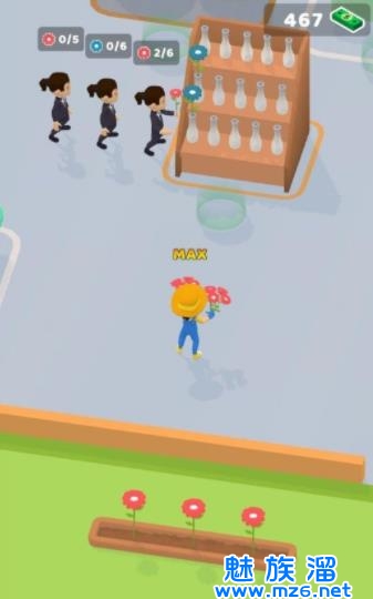 随意滑动屏幕控制花店老板移动,获取资金,采花种花,买花收款等,当有了资金后可以升级自己的花店或苗圃,也能升级自己的速度和力量等。