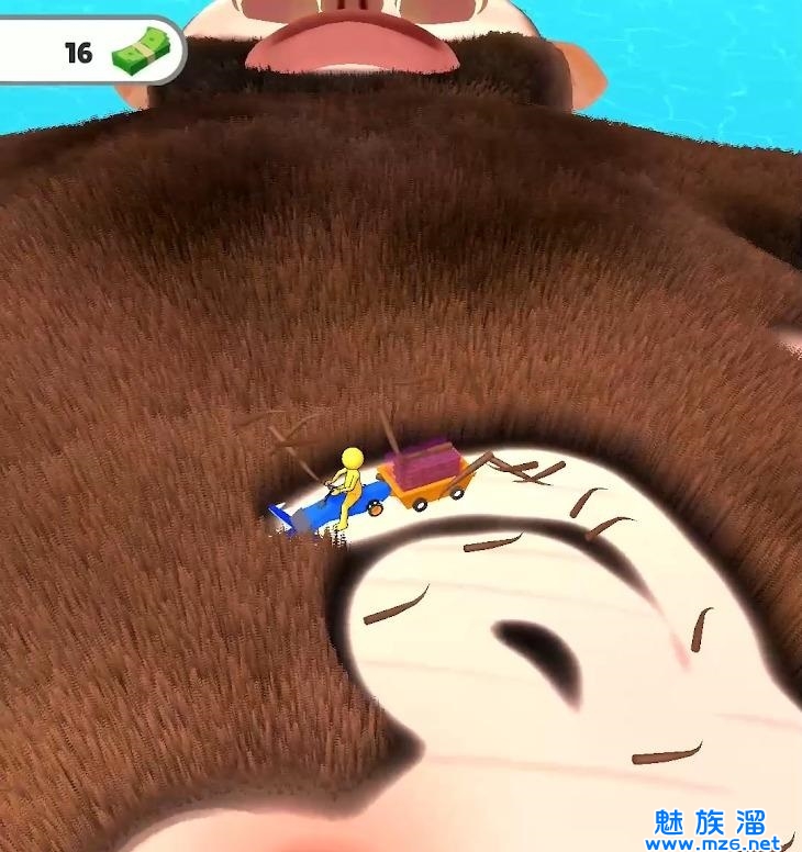 1、类似割草的趣味搞笑手游,你的任务就是骑着剃须刀剃毛,然后把剃下来的毛卖掉赚钱;