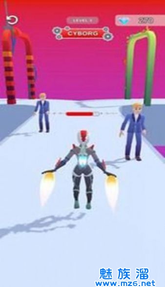 3、将扮演电子人,在各类科幻场景中不断跑酷闯关,多种关卡陷阱会阻碍玩家。