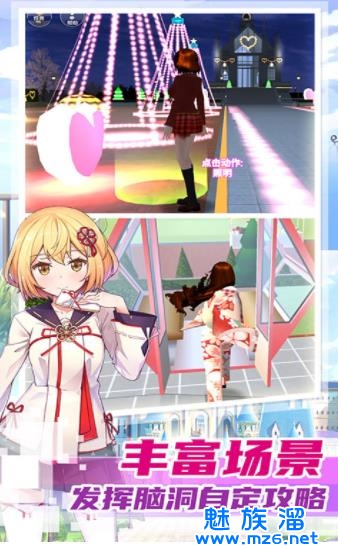 在这款游戏中玩家们可以和你的角色一起在校园之中体验趣味的生活,这里还有着超多的二次元的角色可以选择,玩家们还可以在这里去建设你的校园,游戏中还有着非常丰富的场景和更多华丽的时装选择哦。