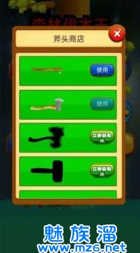 游戏中可以解锁更多的斧头,需要摧毁所有的树木