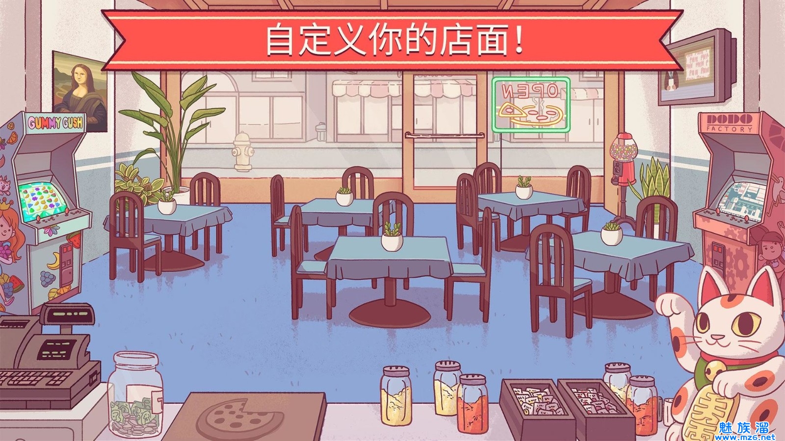3、可以自由装饰披萨店面,可以用卖披萨的钱来装饰自己的披萨店,这样可以吸引到更多的人哦!