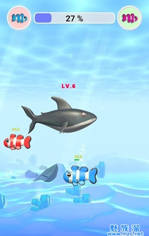 3、帮助鱼儿们更快长大,进化成更凶残的大鱼,称霸海洋。