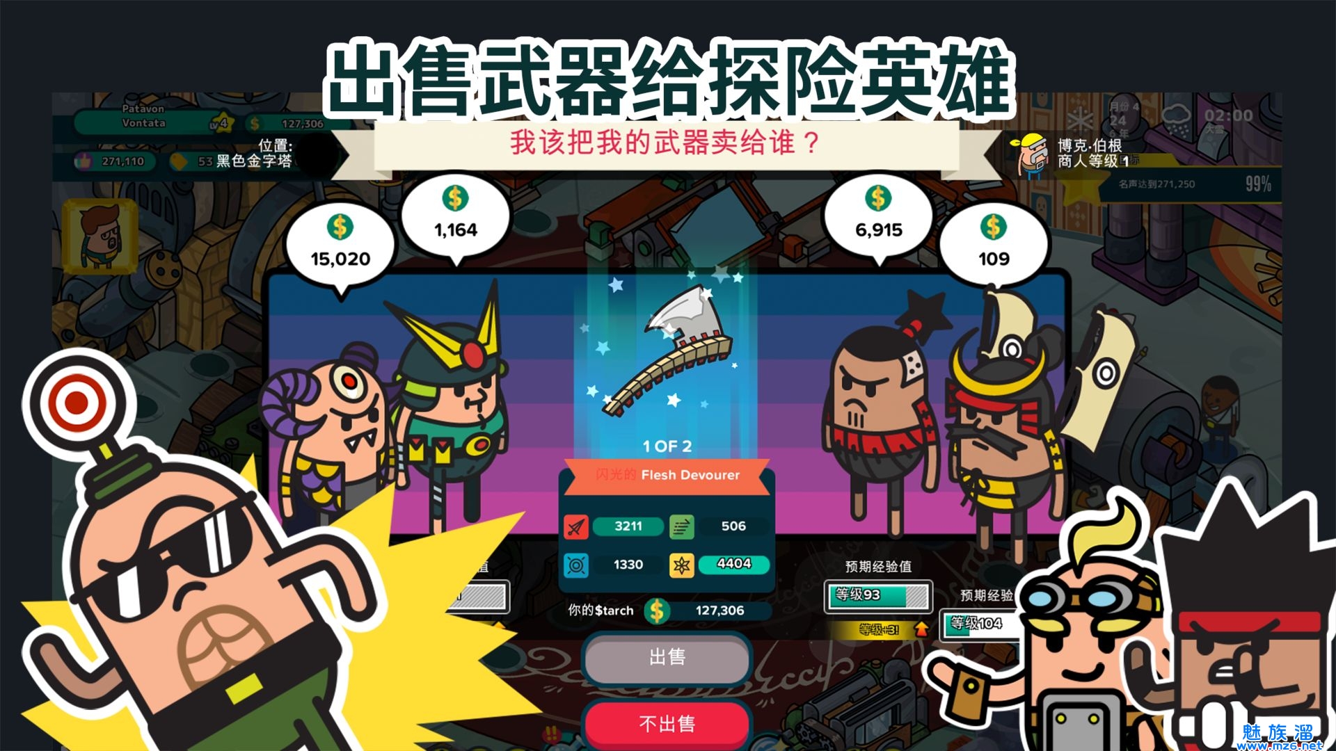 ● 将武器卖给探索的英雄并建立紧密的客户关系,从而更多地了解这些可爱的土豆人