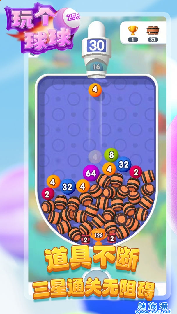 《玩个球》是一款融合了2048和趣味三消的创新休闲小游戏,游戏在每个关卡中都有新的谜题、挑战和障碍。玩家通过利用不同数字球的大小和弹射达到合并消除和粉碎障碍来完成通关任务!完成通关任务,还可以获取“星星”作为积累奖励!闲暇之余,除了进行益智挑战,还可以打造只属于你的幸福小镇!