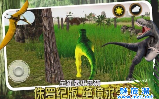 3、无尽的恐龙世界,操作无比的简单。加入了昼夜循环。逼真的天气系统。