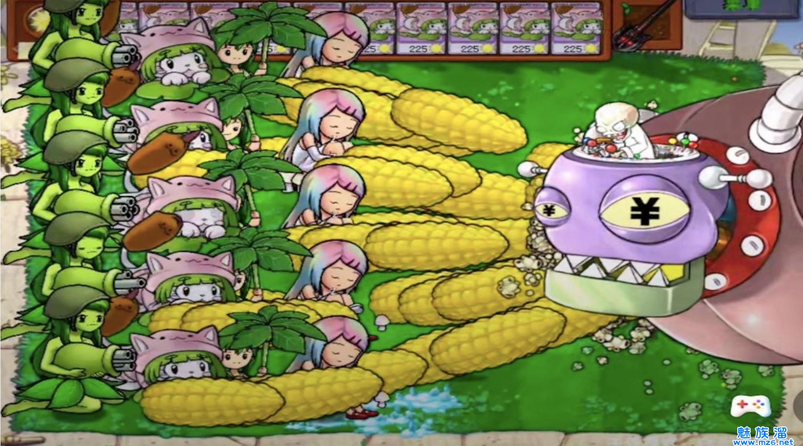 2、拟人化的手法,这里的植物成了萌系的少女,解锁武器去战斗。