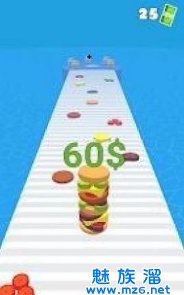 3、在游戏开始的时候你需要控制着汉堡去进行着闯关,在你前进的道路上将汉堡材料通通的收进来,一步步的强大自己。
