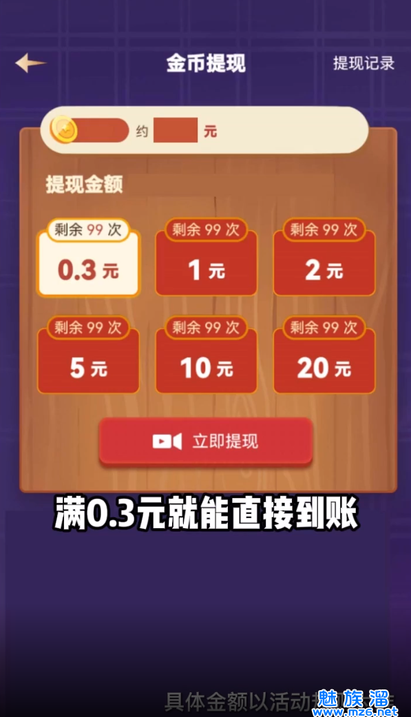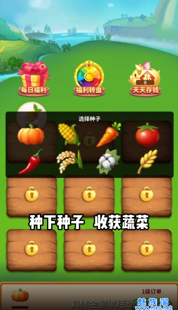 1、在闲暇的时间种树、浇水、收获果实,最后兑换成自己的钱钱。