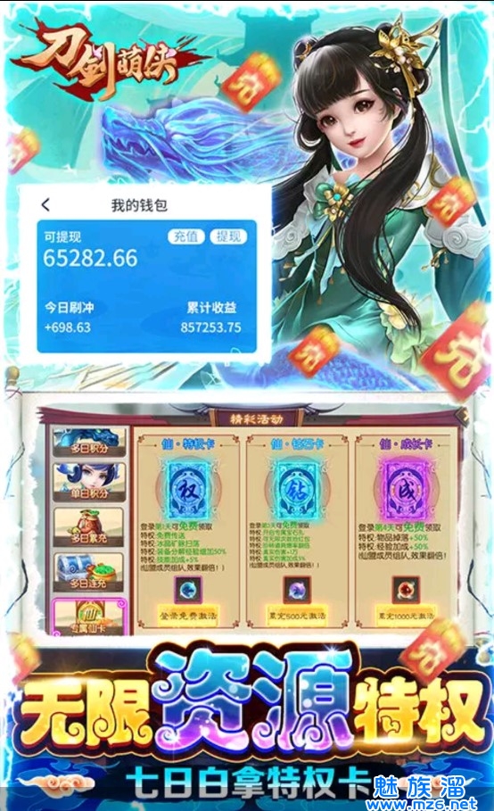刀剑萌侠是一款仙侠MMRPG游戏,上线即可获得超强GM工具开启游戏管理功能,无限资源特权,七日在线白拿特权卡,赠送试玩真实充值数额,更有多样充值活动,福利超多享受全面的PVP对战。