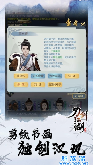 1、成为一名武林中人,你可以前往地图上的各个地方去游历,有专属剧情故事;