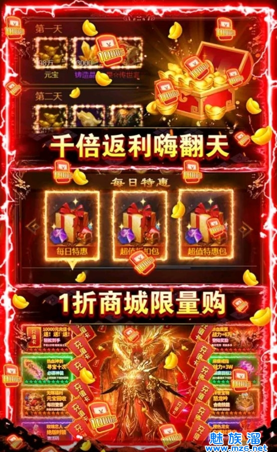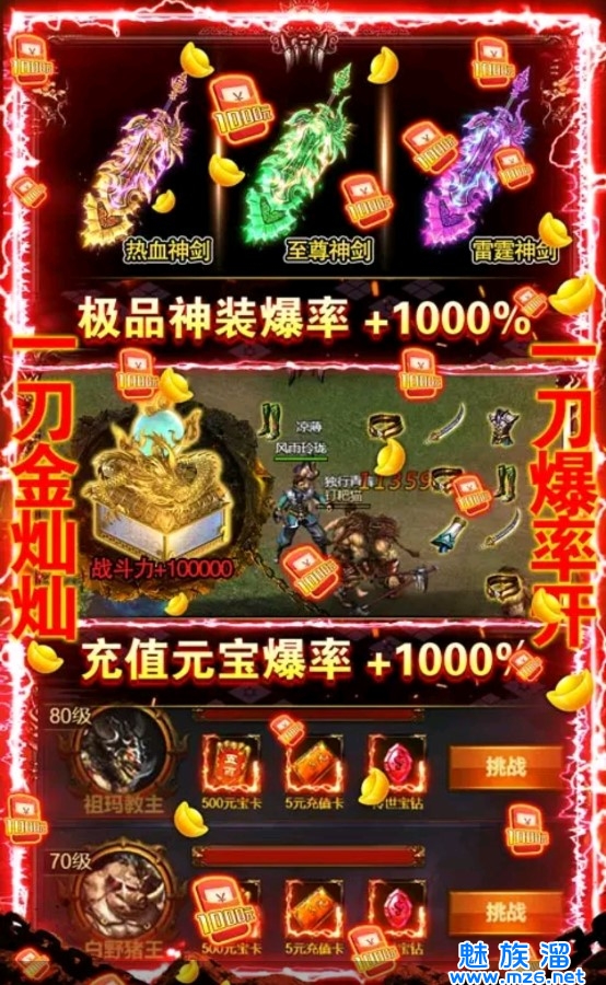 无限福利每日壕领不停!创角直升百级,日送百万元宝!BOSS爆率全部上调1000%,所有装备材料皆能爆!