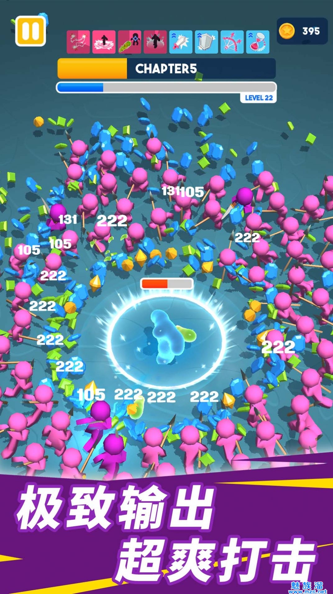 1、结合了休闲的割草活动以及竞技的大乱斗,可以体验到两种截然不同的玩法;