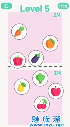 2、有的是蔬菜,你自己需要将这些不同的图标在规定时间内按照相同的元素正确的组合在一起