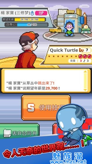 2、之后就是让员工继续工作赚钱,给玩家自己升级体力等等各项属性,满员工一个月少说也能赚个30千左右,升级满玩家自己的属性和谈判技巧,就可以真正的培养员工了。抓捕工资要求低,努力值高性格又好的员工回来开始着重培养