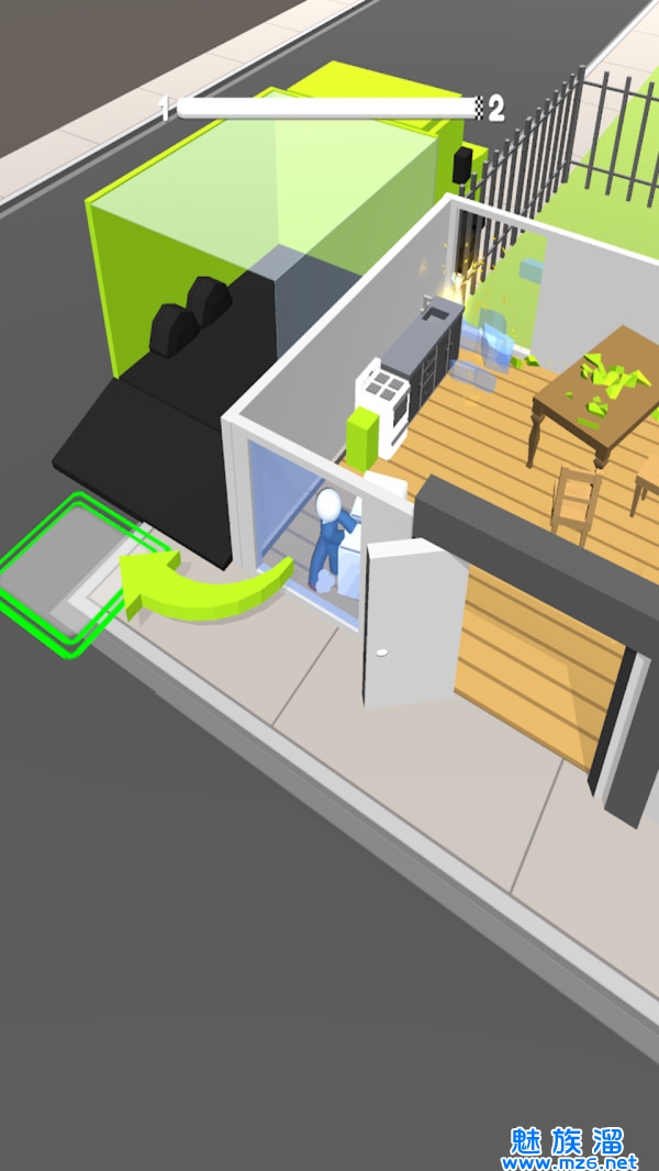 1.魔性趣味的搬运模拟游戏,接取任务前往各个房屋关卡,将所有的家具物品搬到指定的位置。