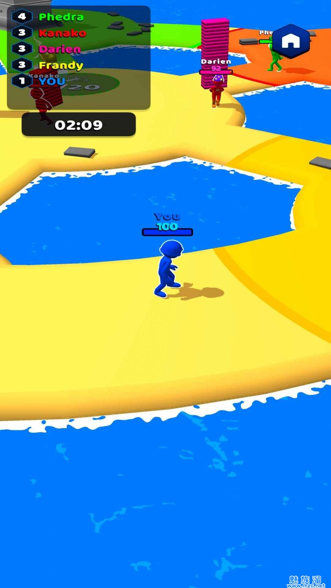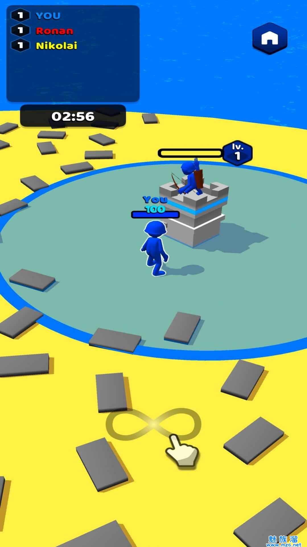 2、收集砖块,升级城堡,让你的弓箭手保护自己,成为最后一个站着的人;