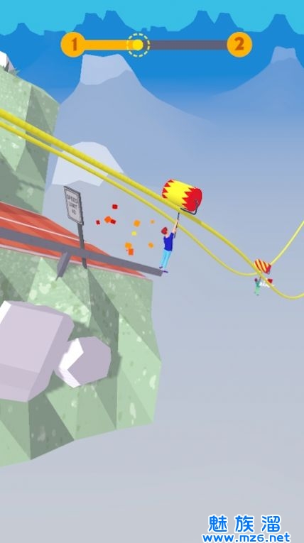 3、滚轴可以变成滑索挂在起伏的索道上帮你顺利通过,最终超过对手到达终点才可以胜利。