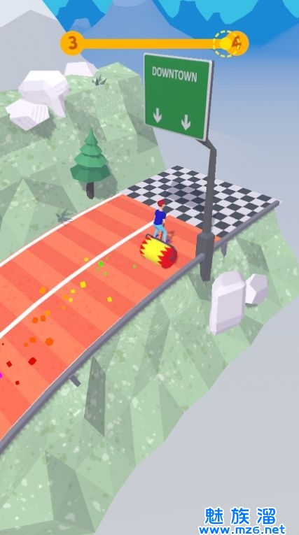 1、赛道建立在起伏的山地上,你和对手推同时推动滚轴前进,遇到下坡可以站在滚轴上加快速度。
