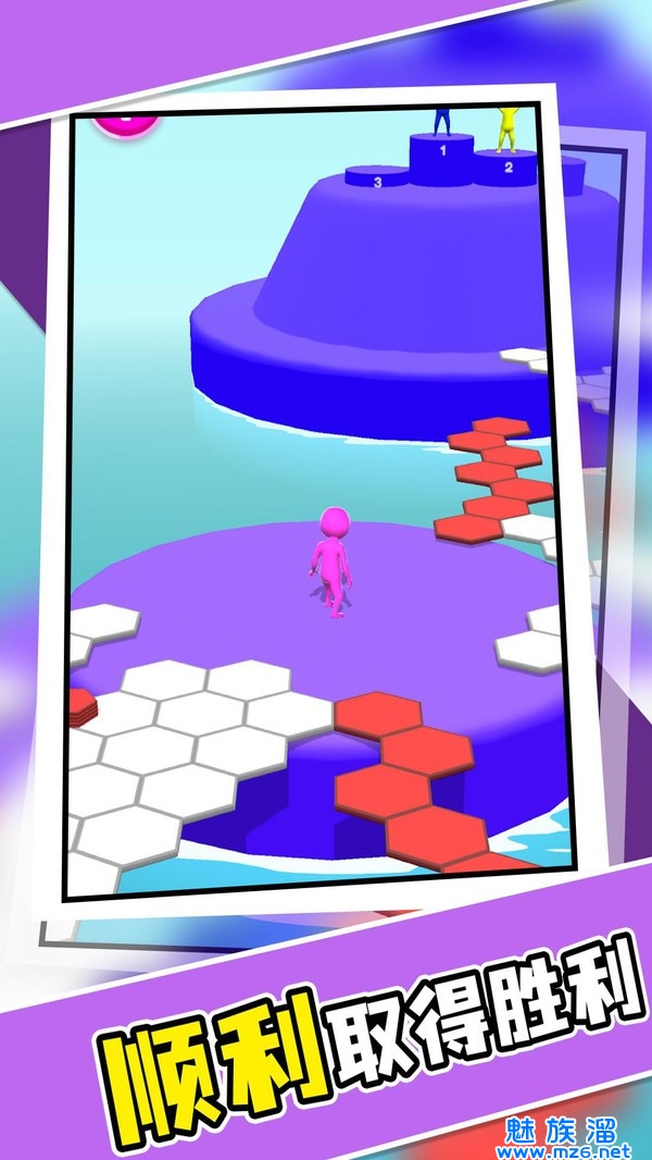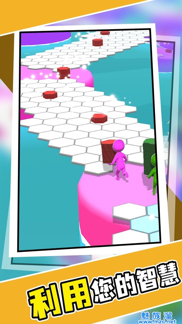 1、合理利用自己以及对手手头上的砖块来收集更多的砖块数量,搭好小路快速过去,全力冲刺。
