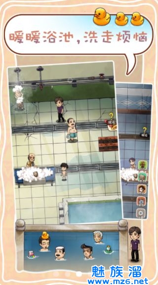 1、一款画风独特的经营澡堂游戏,在这个澡堂里,所有的员工都是看起来很小的;