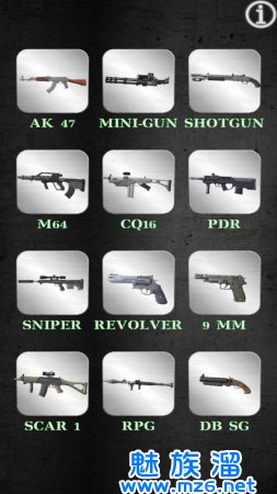 您从主屏幕上选择武器,然后点击进行射击。 摇动手机(或像枪一样摇动架子)以重新加载枪支。