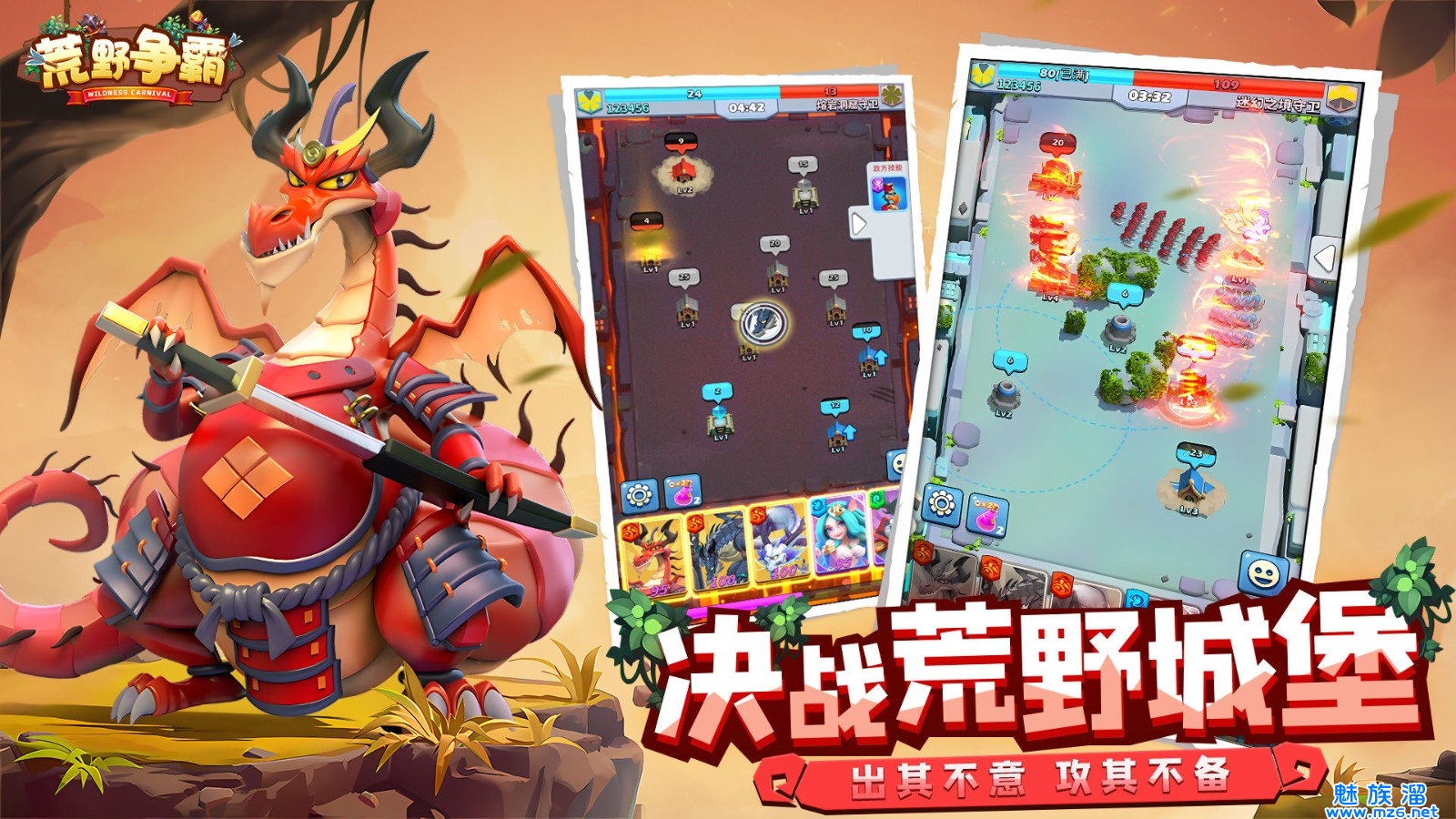 《荒野争霸》是一款融合即时战略与塔防元素的趣味休闲手游。在这里玩家将化身为优秀指挥官,动动手指随意指挥士兵出征,攻占敌方城塔,玩家还可以收集并升级英雄卡牌,搭配出最强大的阵容,利用英雄特有的技能,挑战极具难度的关卡,玩家可以体验在线实时匹配对战,双方的实力将被拉到同一水平线的竞技玩法,英雄战略尽情展现!真正策略制胜,简约却不简单,每场都是策略,智慧取胜!