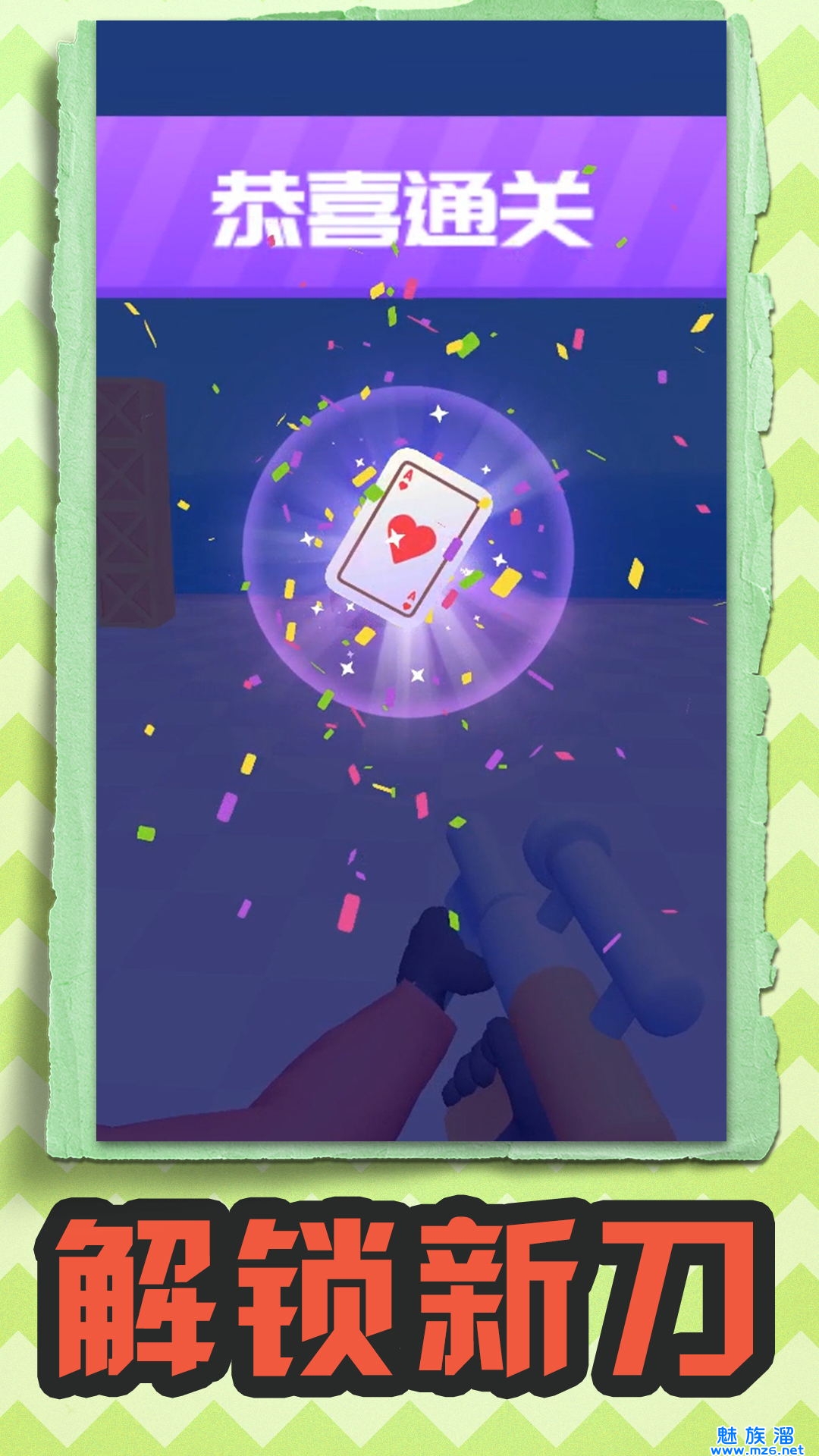 2、精彩的游戏操作玩法等你解锁,把握合适的力度来投掷你的飞刀,百分百命中敌人;