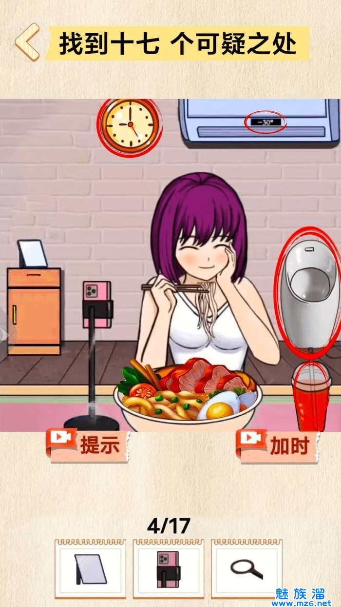 3、在限定时间内找出所有的诡异之处,挑战自己的速度和准确性。