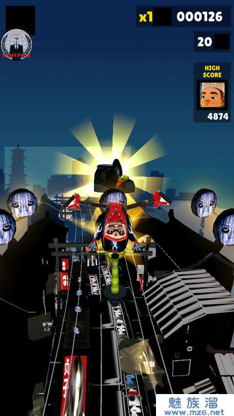 在挑战的过程中,收集更多的硬币,你收集的金币越多,你的角色就会变得越强大,跑得也越快;
