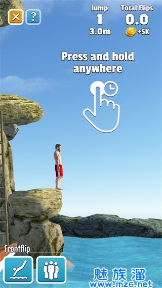 在游戏中,玩家只需要控制角色离开跳台,然后点击屏幕让其用各种姿势入水即可。当然如果想要拿到高分,还是需要角色的头部或脚部笔直入水才算达标。