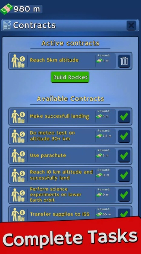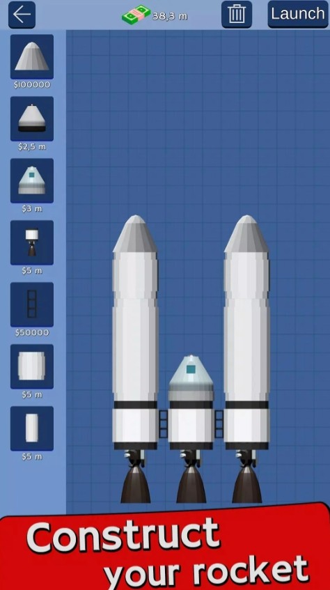 2、玩家需要利用各种零件、发动机、油箱和整流罩,打造属于您的终极火箭。