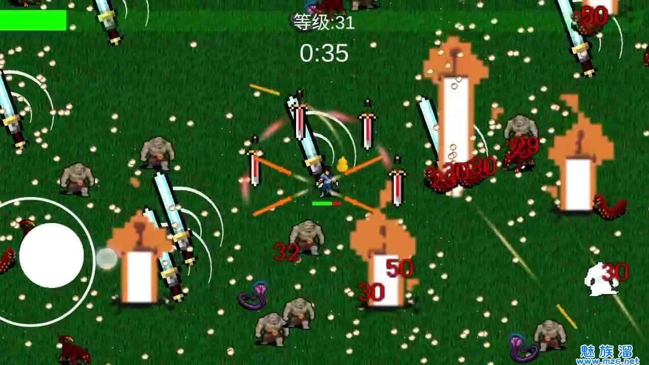 1.大量的像素怪物会攻击你,你可以使用飞剑四处移动并攻击敌人。