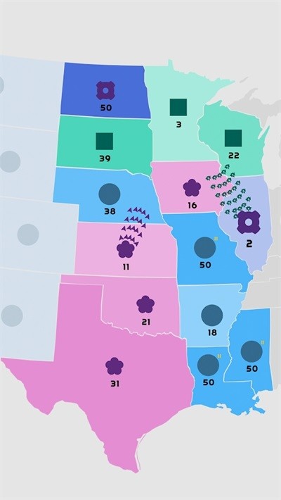 所有势力拥有明确的颜色划分,根据不同颜色土地就能快速判断势力,根本不用担心会出现进攻失误的情况。