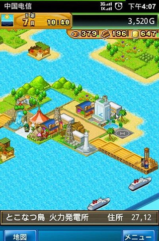 游戏开始后,住房里除了主角以外,其他的都被安置在观光区域上,靠近码头等位置。游戏中主要有4个位置提供交通连接的观光区域。