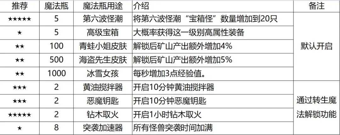 推荐手上还富裕着不少魔法瓶,想要合理使用,将魔法瓶的价值发挥最优的玩家。