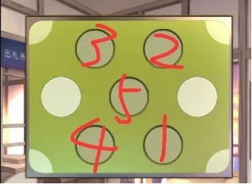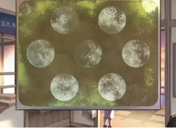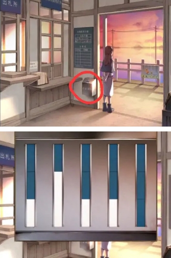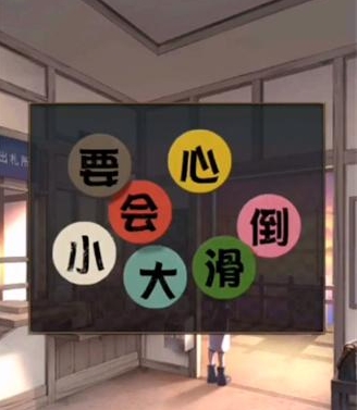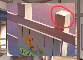 6、结合门外告示牌下方的文字和【有洞的车票】的颜色,再根据右侧包裹左下角的颜色位置顺序指示;