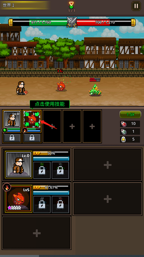 4、进入游戏后会自动进行战斗,使用技能可以让你更快的结束战斗