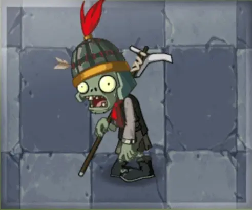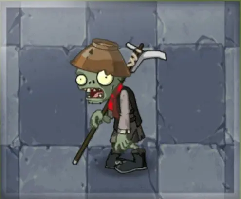 顶碗军事僵尸在一次征战丢失了自己的头盔,他把碗顶在投手假装自己戴着头盔,但只有他自己相信这一点。