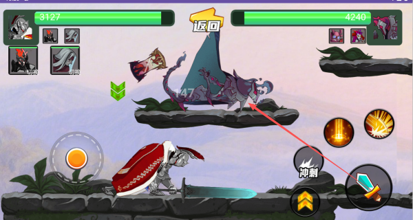3、轻点右侧按钮,操控角色释放技能展开攻击,全力以赴地歼灭敌人。