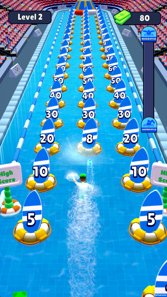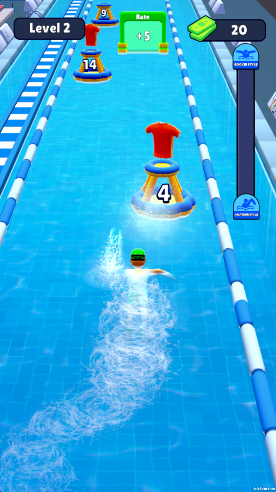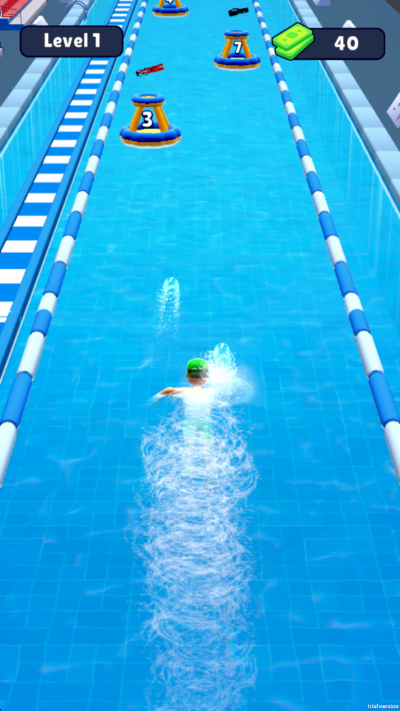 游泳冲刺(Swimmer Rush)是一款刺激的水下竞速手游。玩家将化身泳坛健将,在泳池中与对手激烈角逐。游泳冲刺考验玩家的反应与技巧,需灵活躲避障碍、精准加速冲刺,争夺每一寸领先。凭借高清画面、沉浸音效及全球排行榜,游泳冲刺为你带来心跳加速的畅爽游泳竞技体验。