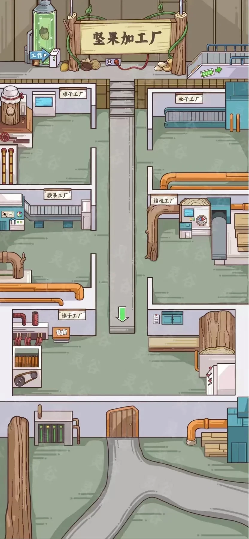 1、玩家可以穿梭在不同的科技工厂里面,加工各种坚果,穿梭和漫步在小径里面。