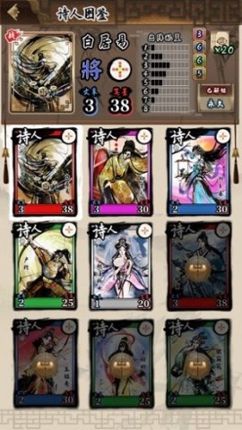 3、诗人图鉴功能:可获取最为顶级的诗人卡牌,其中包含三位传奇诗人——杜甫、李白、李贺,这些卡牌珍贵至极,且不具备技能。