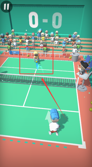 2、竖版球场界面与单手操作设计,适配移动端使用习惯,简化了发球与回球等动作操作,让玩家随时随地便捷开启对决。