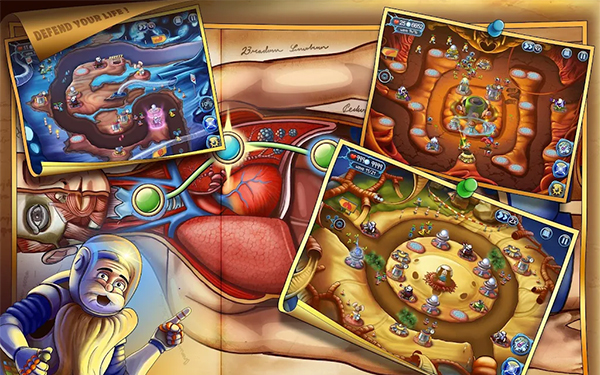 人体保卫战(Defend Your Life)是一款创意独特的塔防游戏。玩家将扮演免疫系统指挥官,在人体器官(如胃、大脑)内建造和升级防御塔,对抗细菌与病毒。人体保卫战包含17个关卡和多样敌人,融合策略部署与科教主题,带来既熟悉又新奇的塔防体验。
