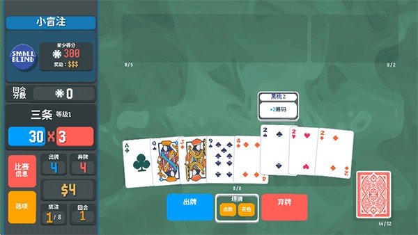 1、《小丑牌》的基本规则十分简单,类似于德州扑克。
