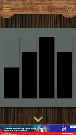 之后使用锤子把床边的木制蚂蚱砸开得到齿轮零件,让墙上的齿轮机关转动起来,再利用上面的提示解开门锁的谜题,就能走出第一个房间了