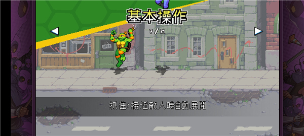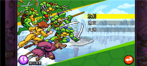1、与《忍者神龟》的经典角色一起通关,包括忍者神龟英雄莱奥、拉夫、唐尼和麦奇,也可选择新增游戏角色爱普、斯普林特师父或凯西·琼斯!